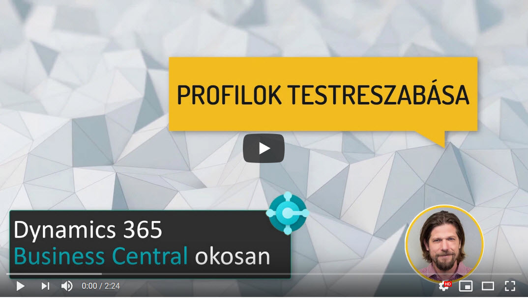 Ebben a videóban megismerkedünk a Profilok testreszabási lehetőségeivel, azaz, hogyan készíthetünk magunknak saját irányítópultot a Dynamics 365 Business Central-ban.
