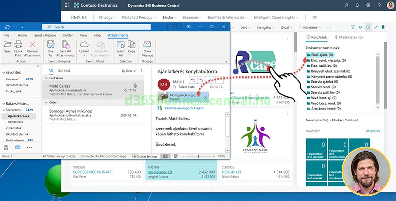 - A dokumentumok alapértelmezett csatolása a Business Central-ban történik meg, tehát a belépési pont az ERP.