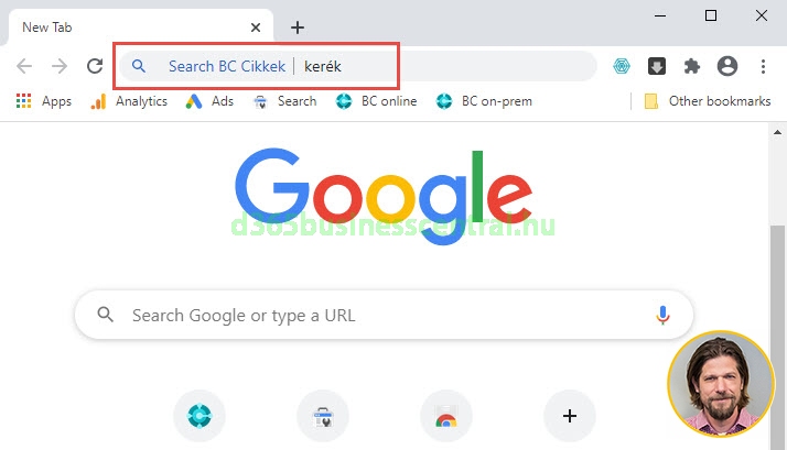 Fontos, hogy megadjuk azt a kulcsszót, amit beírva a Google keresőmezőbe az automatikusan felismerésre kerüljön és utána már csak a keresendő kifejezést kelljen megadnunk.